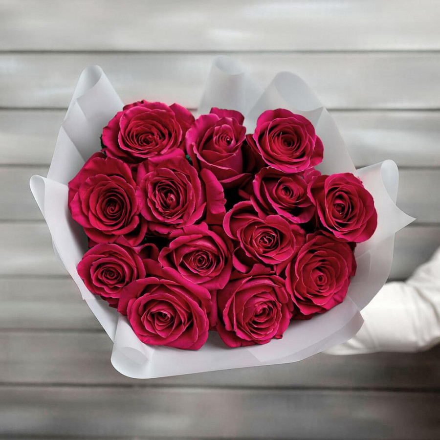 лента (за1м) - 1 шт. пленка прозрачная (за1м) - 1 шт. упаковка в ассортименте (за1м) - 1 шт. роза эквадор 5 малиновый - 13 шт.