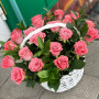 На фото композиция из 21 розовой розы в белой корзине. В составе: роза 21 шт, корзина (m) 1 шт, . Все цветы свежие и ароматные, букет красиво оформлен и отлично подходит для подарка. Доступна доставка цветов или самовывоз.